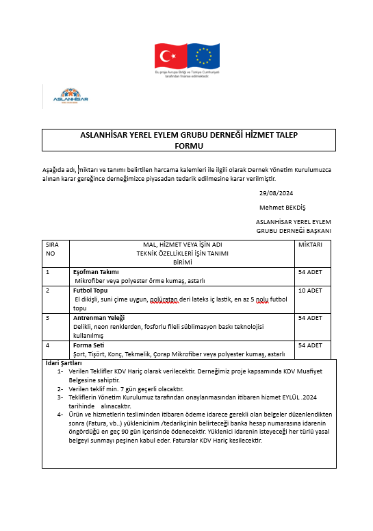 Çavdarhisar ve Aslanapa'da yer alan Amatör Spor Kulüpleri için malzeme alınacaktır.